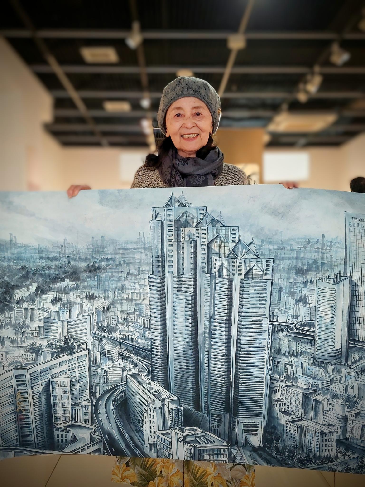 個展を訪れた生徒のニキフォロワさんは「先生の作品には魂がこもっている。芸術的でとてもすばらしい。感動しました」と話していた。