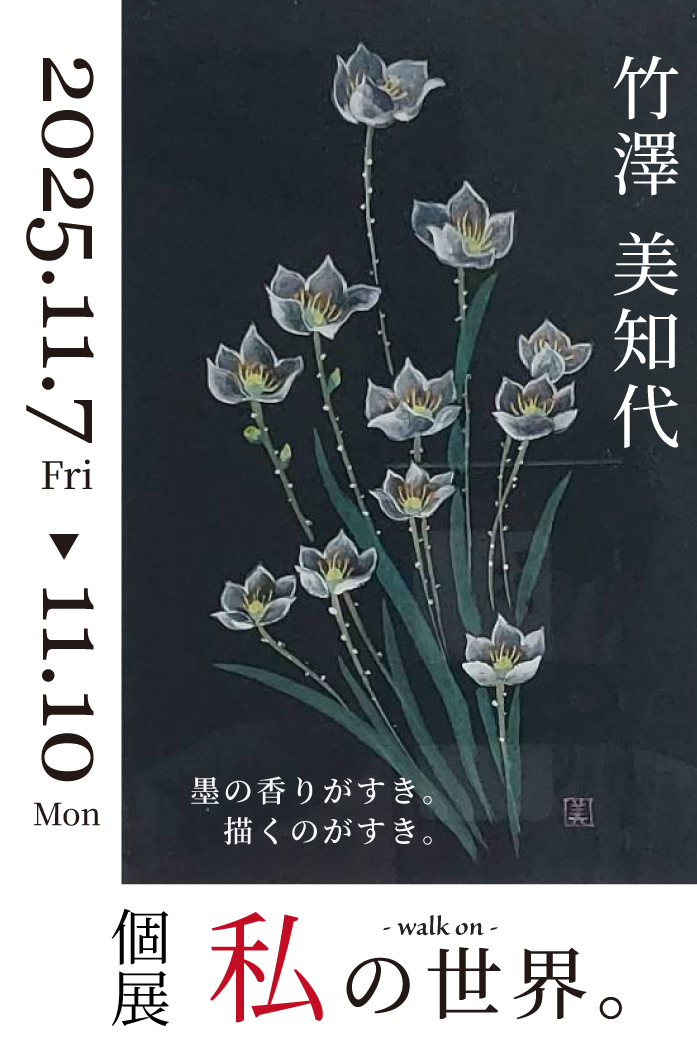 水墨画家 竹澤美知代の展覧会のページ。国画水墨院理事/外務大臣賞・文部科学大臣賞 受賞/水墨画教室では、はじめての方、初心者の方にも基礎から丁寧にしっかりと指導します。
